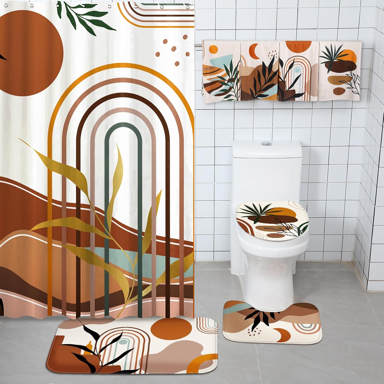 | Included Components | 1 x Summer shower curtain with 12 hooks, 1 x Toilet lid cover, 2 x Bath mats, 4 x Different types of towels |
