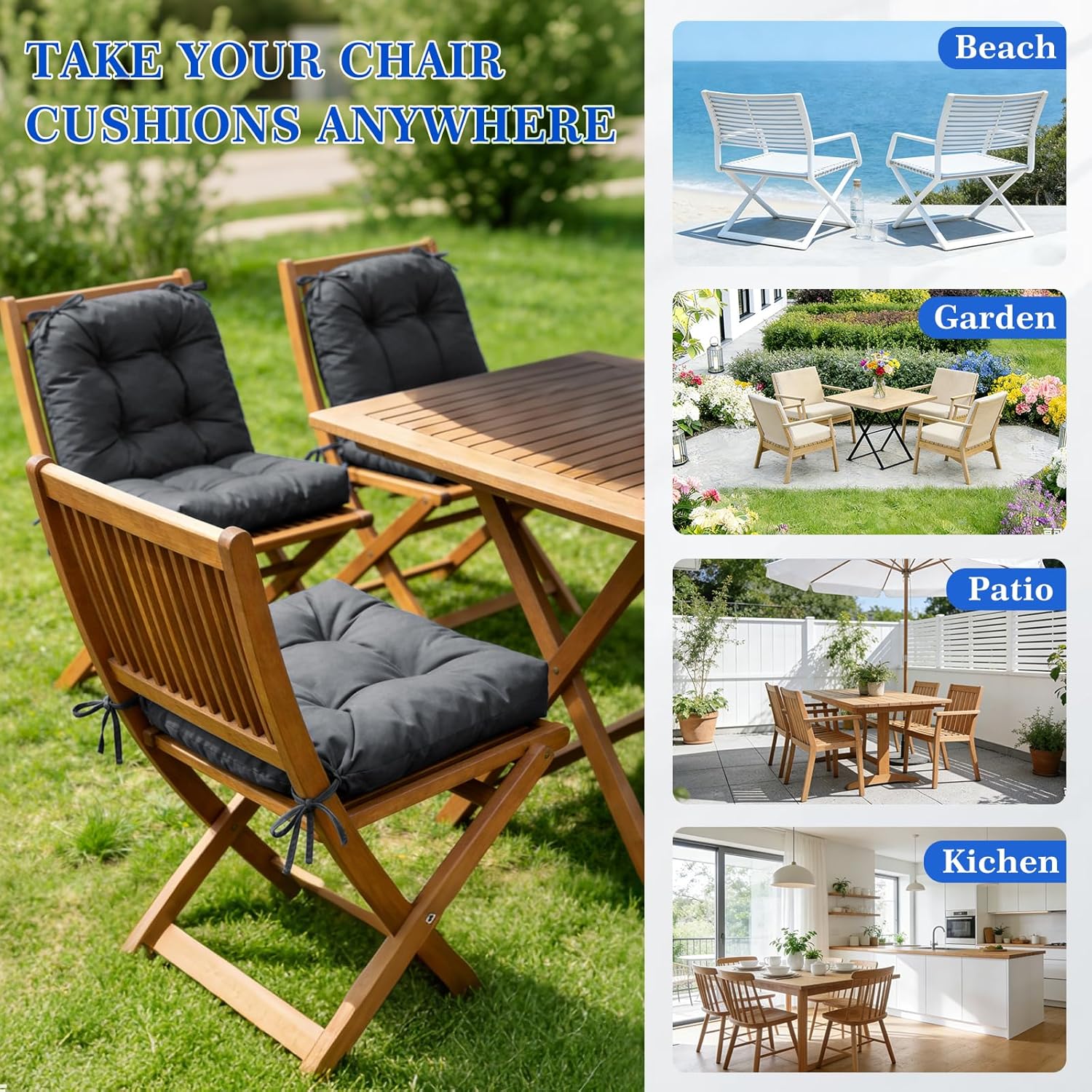 • Great for Patio & Fit for Standard Chair & Easy Care - HUADUO-BEAUTY outdoor seat cushions crafted from premium polyester fabric, easy clean with just mild soap and water and easy to maintain, also designed to resist wear from sun and weather. The size of patio furniture cushions is 19” x 19” x 5”, match for most standard outdoor dining chairs, wicker garden chair, rattan, rocking and patio chairs. (TIPS: Please measure the size of your chairs before ordering)