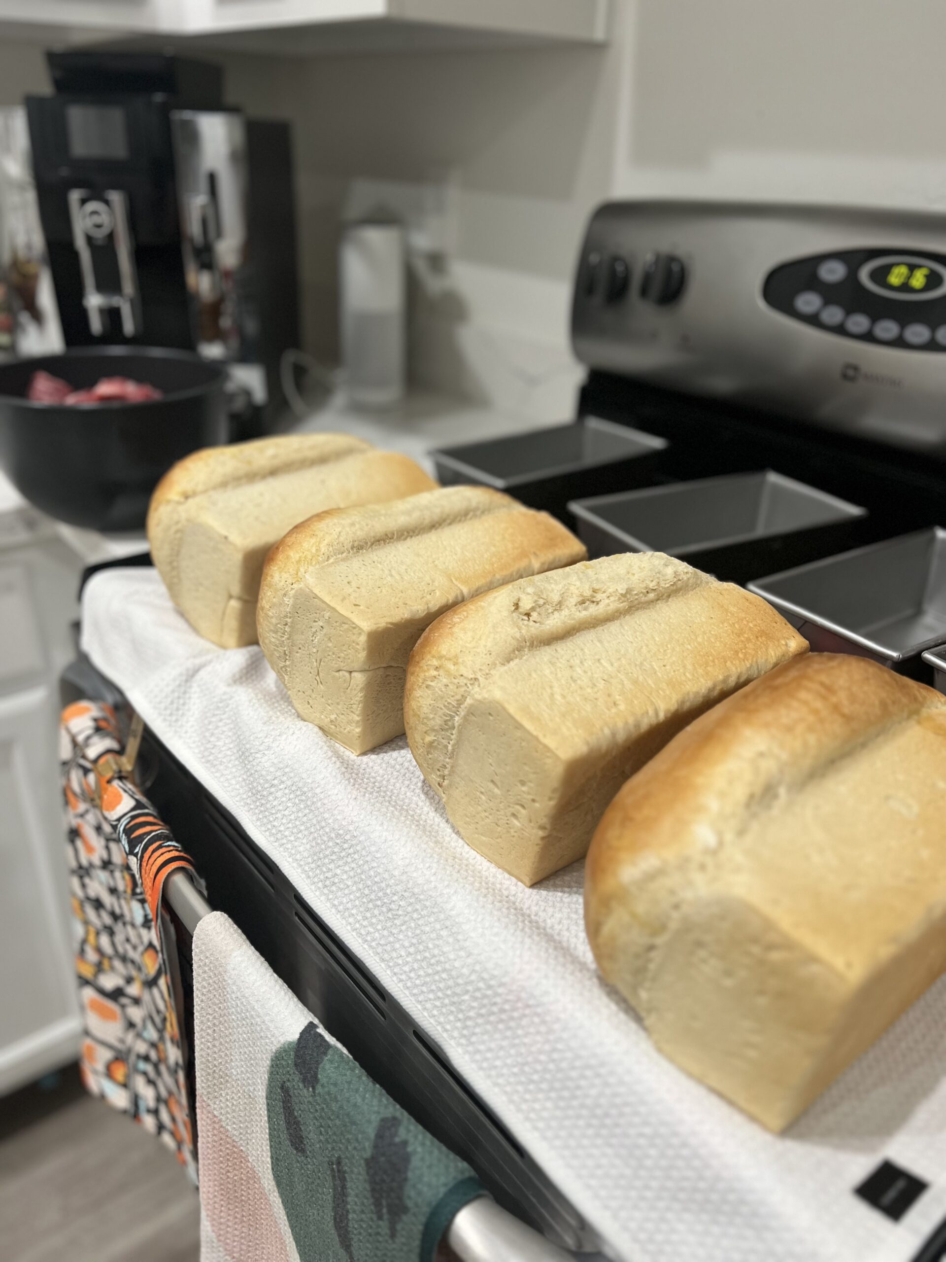 - Cover the bread pans with a light towel while it rises. If the timer goes over an hour its okay