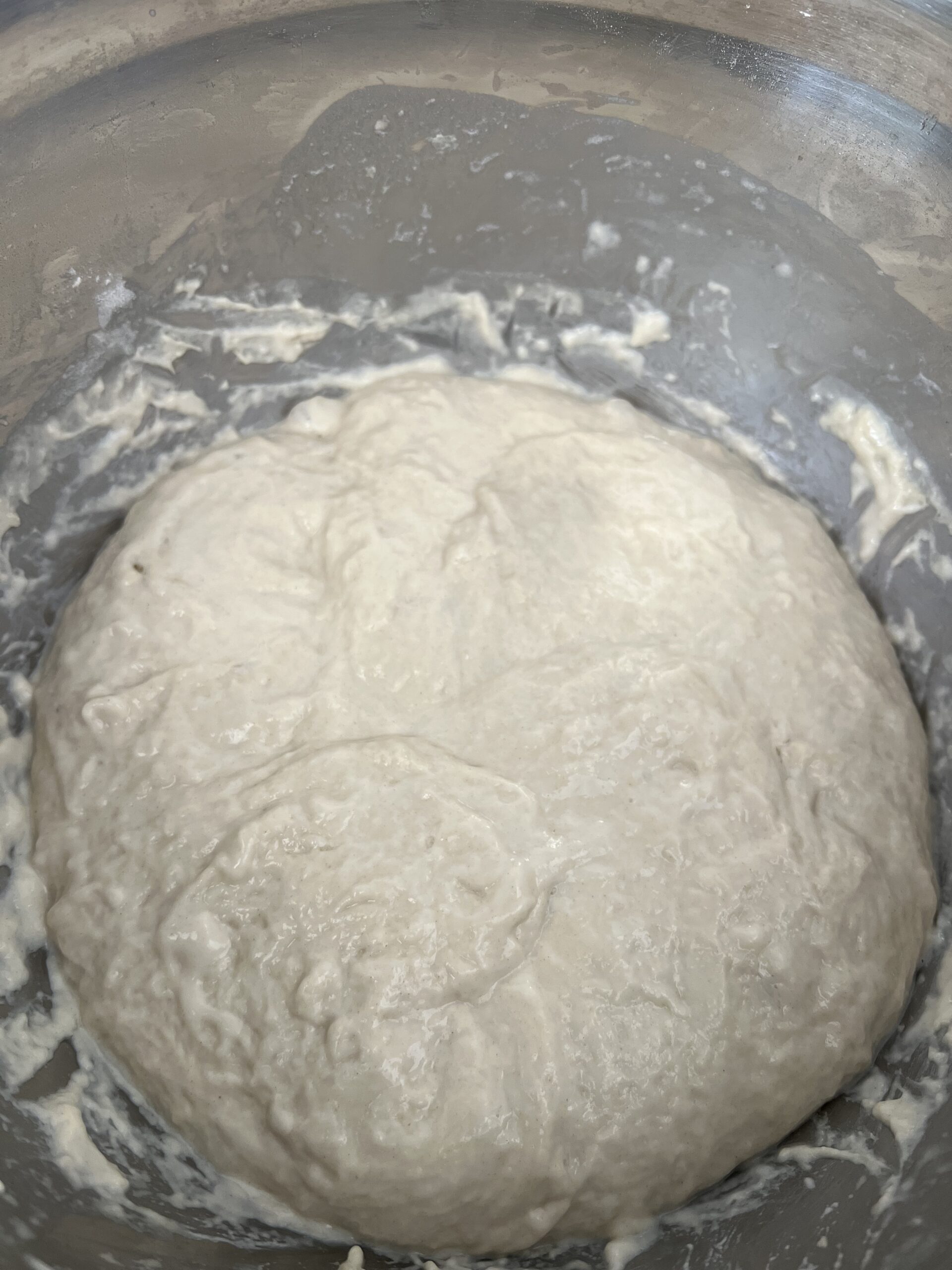- Wet your hand and scrape the bowl and fold the dough into itself. Do a quarter turn and repeat 3 more times
